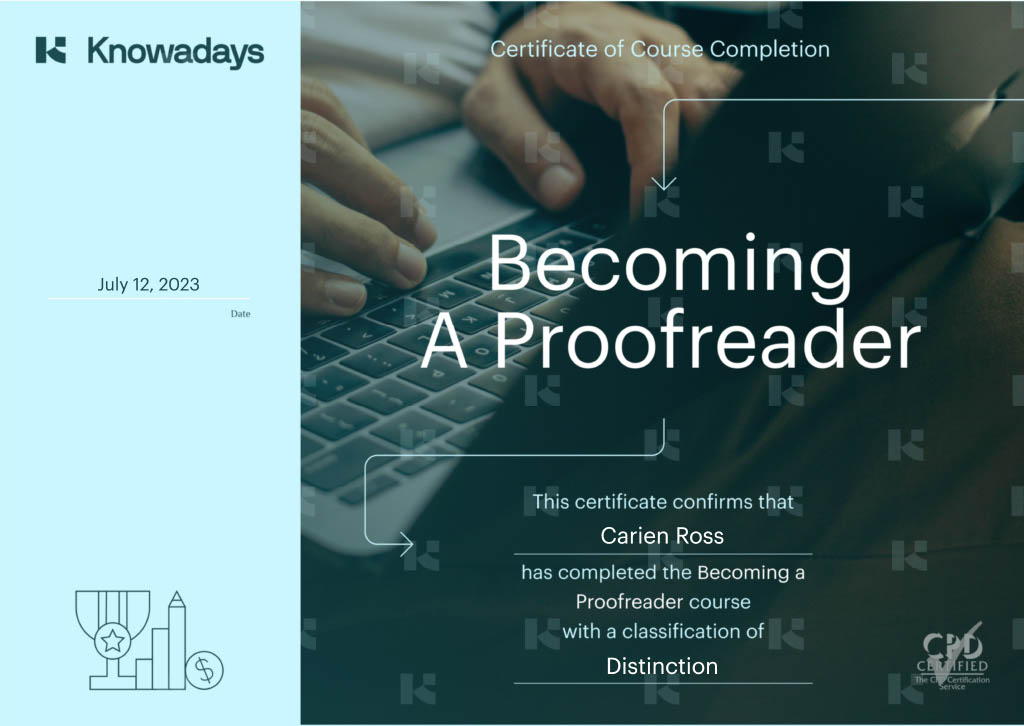 - Distinction achieved in Becoming a Proofreader through Knowadays